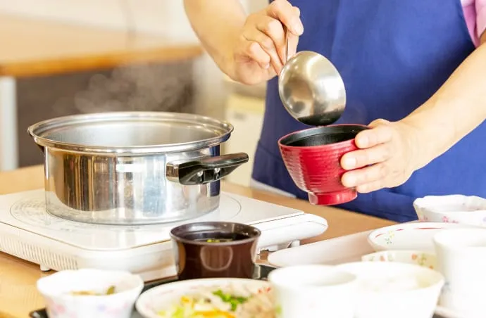 食事は、栄養士監修による健康面と嗜好を考えたメニューを毎日3食ご提供しています。毎日入浴が可能な大浴場を完備するほか、緊急時、お部屋から職員に連絡できる装置を備え、医療機関等へ迅速に対応できるように24時間当直体制で職員を配置しています。また、ご入居者様の定期検診、駅や公共機関への送迎サービス、買い物ツアー、夏祭りなど催しものの参加案内など、各種生活支援も行っています。