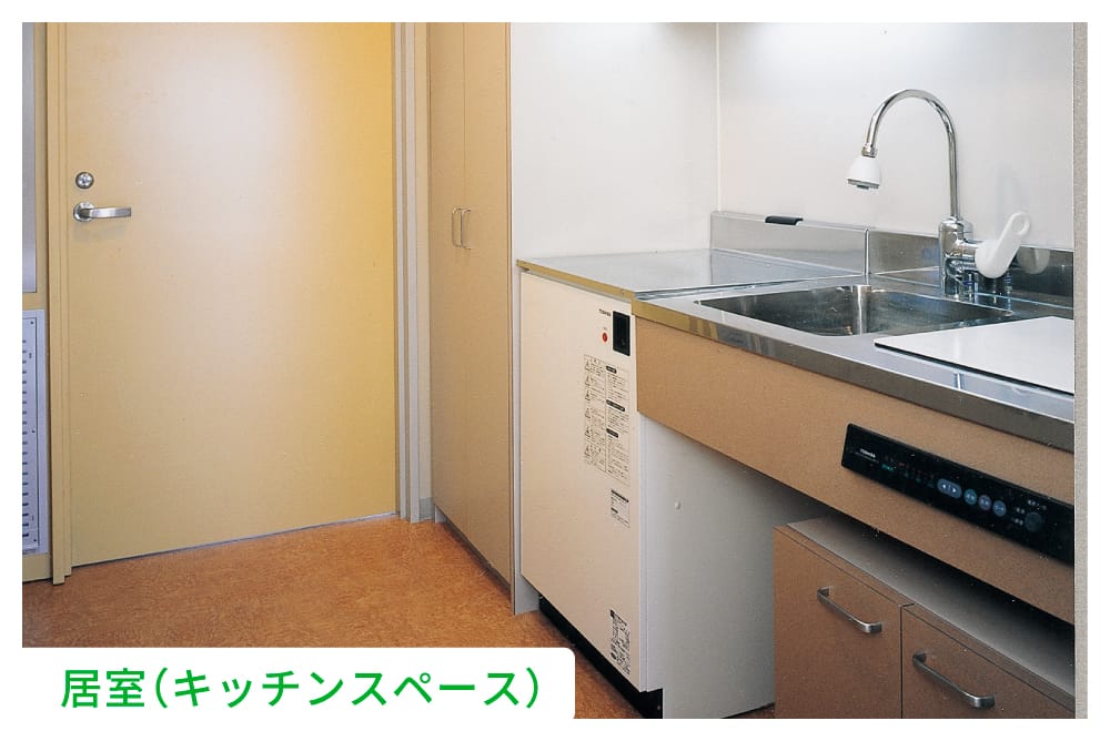 お部屋は個室・夫婦での居室を備え、キッチンスペースを設けています。当施設ではご入居者様のプライバシー遵守を心掛け、皆様が安心・安全に生活が送れるように支援いたします。また、入居年月が経過するとともに身体状況に変化が見られた方も、できる限り住み慣れた環境で生活が送れるようにご家族や各種サービス提供機関との調整もさせていただいています。